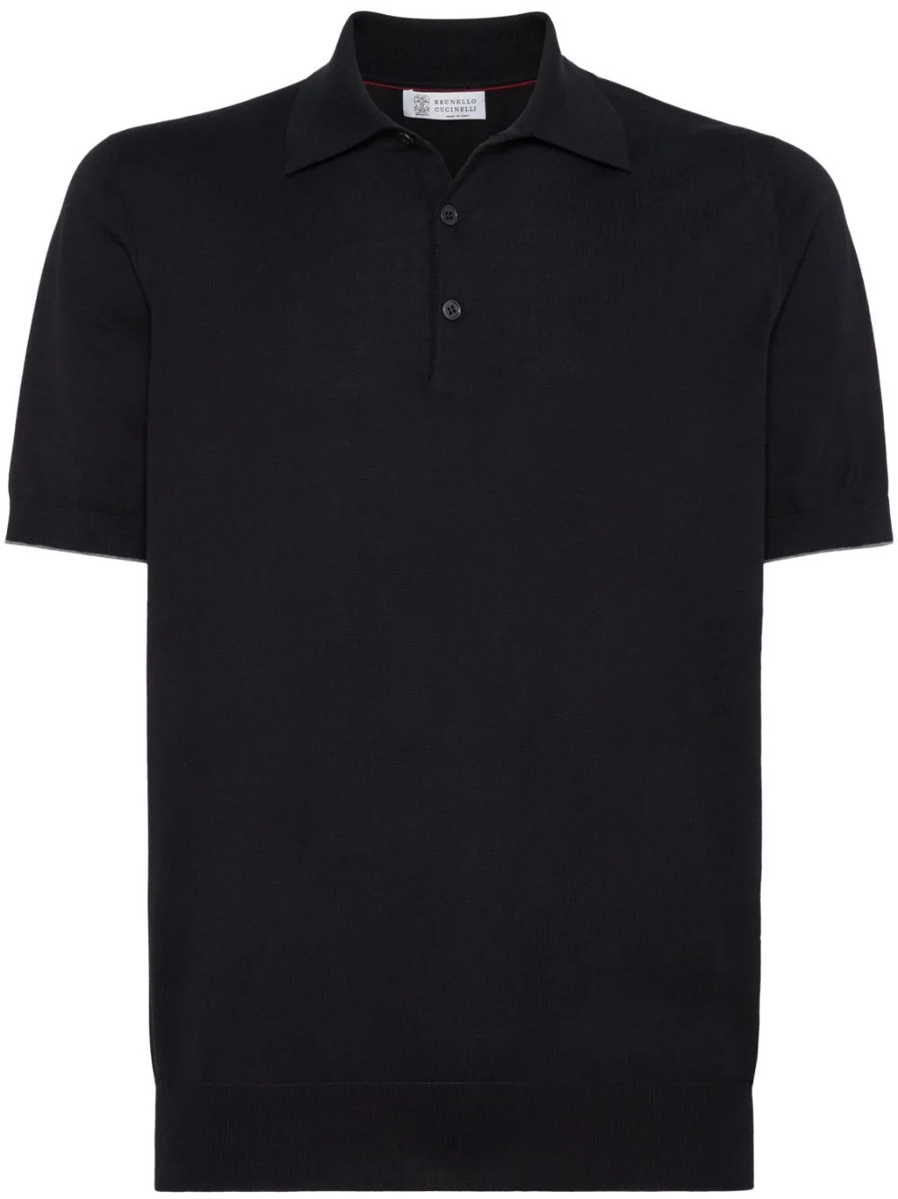 cotton polo shirt Brunello Cucinelli merges time-honoured craftsmanship with modern design in the construction of this black polo shirt. Crafted from cotton pique, it boasts a minimalist design that speaks to the brand's timeless aesthetic. Made in Italy Composition Cotton 100% SIZE & FIT Model measurements Height 6 ft 2 in(1.88 m) Bust/Chest 36.61 in(93 cm) Hips 35.82 in(91 cm) Waist 27.95 in(71 cm) Measurement CHEST 42.51 in(108 cm) FittingInformation This piece fits true to size. We recommend you get your regular size Cut for a slim fit Made with a mid-weight fabric Washing instructions Hand Wash