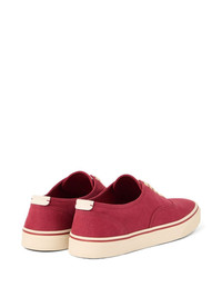 cotton sneakers Highlights - Ruby red - Front lace-up fastening - Flat rubber sole - Branded insole - Round toe Made in Italy Composition Outer: Cotton 100%, CALFSKIN 100% Lining: Fabric 100% Sole: Rubber 100%