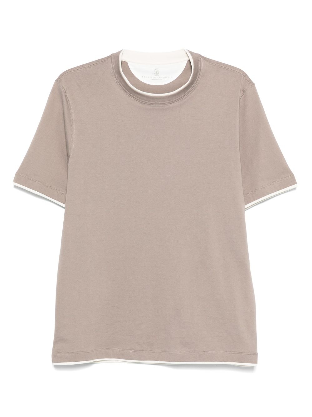 cotton T-shirt Highlights - Brown - Crew neck - Short sleeves - Contrasting border - Straight hem Made in Italy Composition Cotton 100% SIZE & FIT Model measurements Height 6 ft 0 in(1.84 m) Bust/Chest 35.82 in(91 cm) Hips 37 in(94 cm) Waist 28.34 in(72 cm) FittingInformation Designed for a regular fit allowing for a comfortably loose fit throughout the body Made from a midweight non-stretch fabric, this piece offers minimal elasticity when worn Washing instructions Machine Wash
