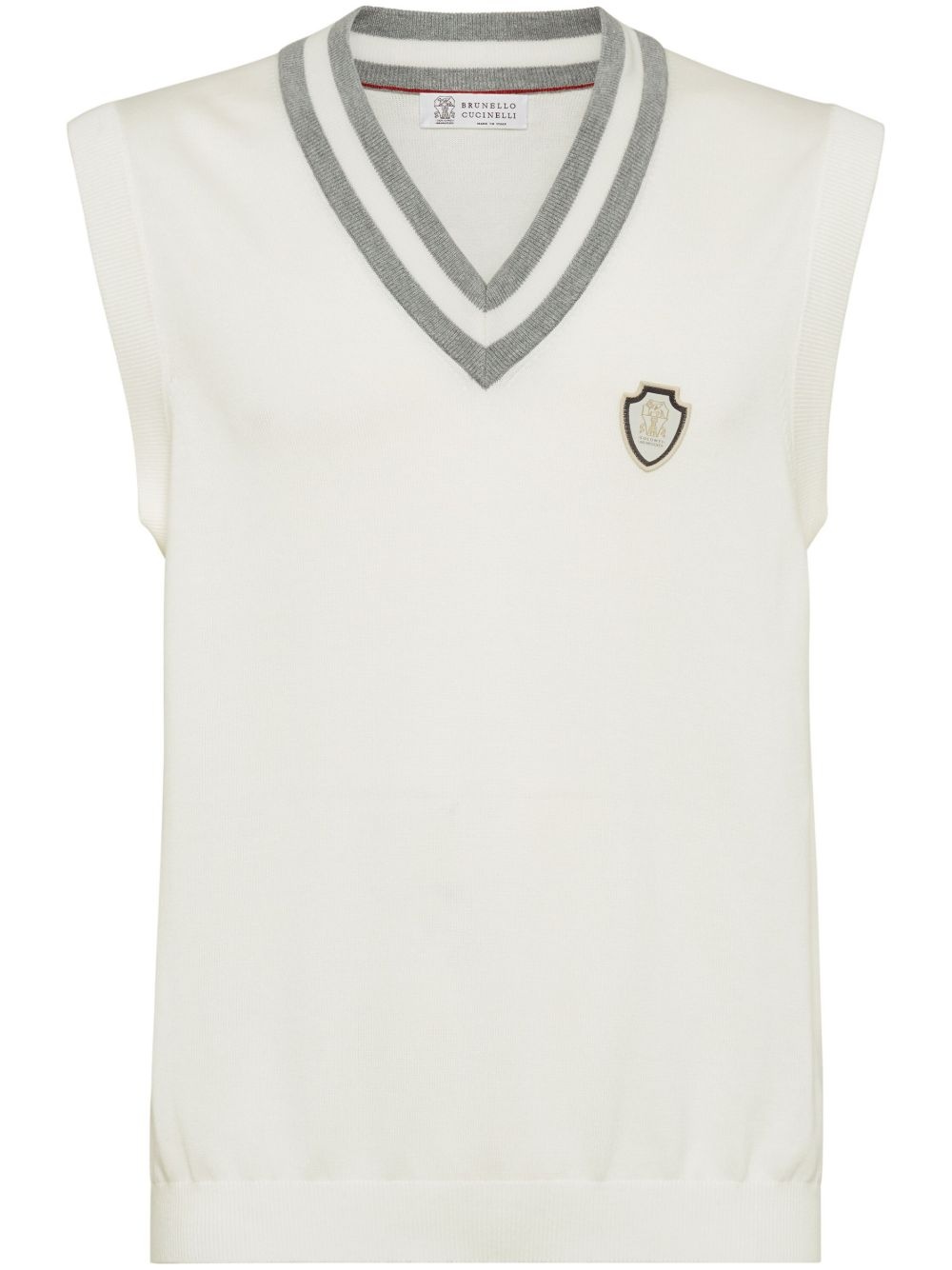 cotton vest Highlights - White - Applique logo - Striped border - V-neck - Sleeveless Made in Italy Composition Cotton 100%