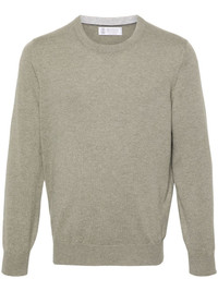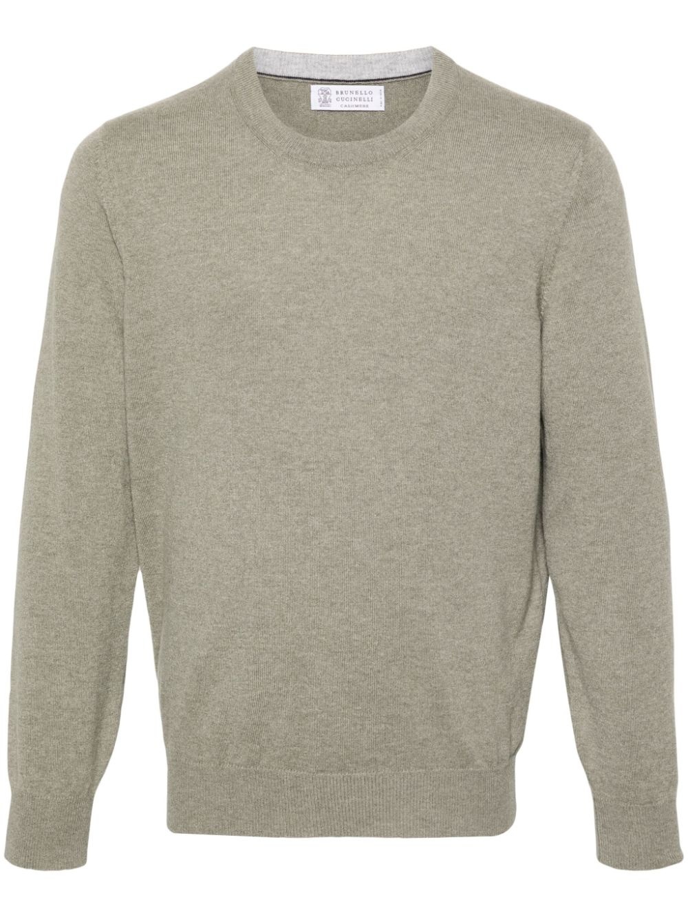 crew-neck cashmere jumper Highlights - Light olive green - Cashmere - Knitted construction - Fine knit - Contrasting trim - Crew neck - Long sleeves - Ribbed cuffs and hem Made in Italy Composition Cashmere 100% SIZE & FIT Model measurements Height 6 ft 2 in(1.87 m) Bust/Chest 36.41 in(92.5 cm) Hips 35.43 in(90 cm) Waist 29.52 in(75 cm) FittingInformation Designed for a regular fit, offering a comfortable loose fit throughout the body Made with a midweight knit, this piece offers some stretch This piece fits true to size – take your usual size