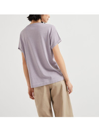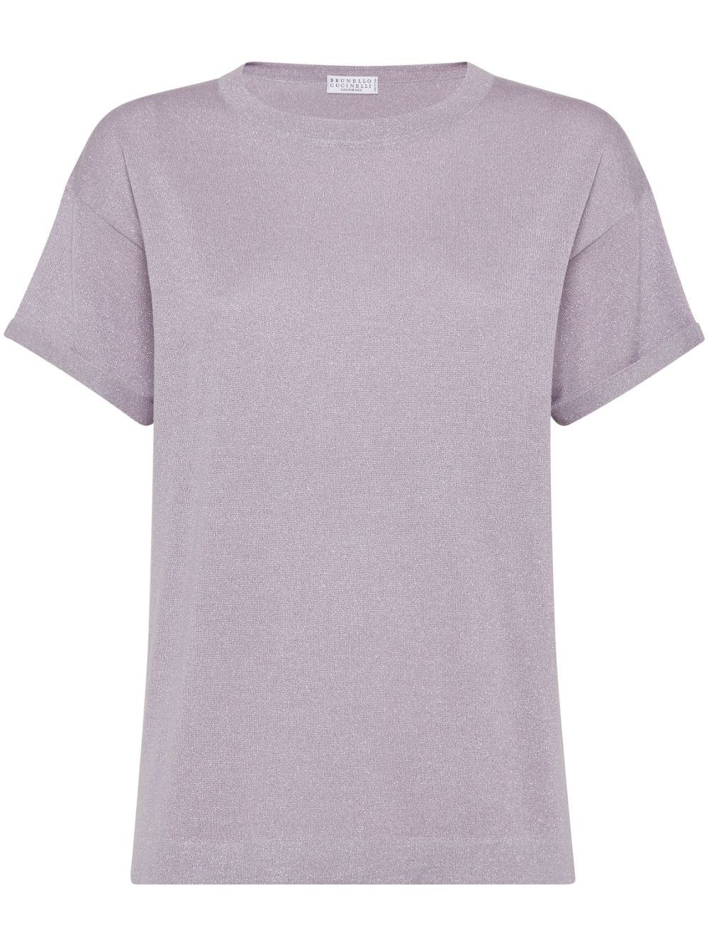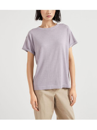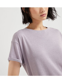 silk-blend top Highlights - Lilac purple - Crew neck - Drop shoulder - Short sleeves - Rolled cuffs Made in Italy Composition Cashmere 51%, Fabric 27%, Silk 22% Washing instructions Hand Wash
