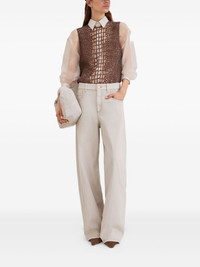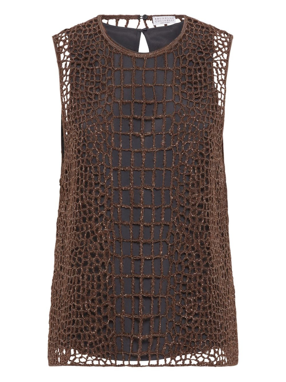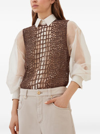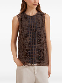 crocodile-effect top Highlights - Brown - Sleeveless - Round neck - Openwork design Made in Italy Composition Mohair 50%, Nylon 36%, Wool 14% Washing instructions Read Manufacturer Guidelines
