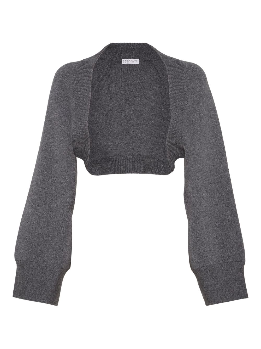 cropped cardigan Highlights - Charcoal grey - Open front design - Balloon sleeves - Ribbed cuffs Made in Italy Composition Cashmere 96%, Nylon 4%