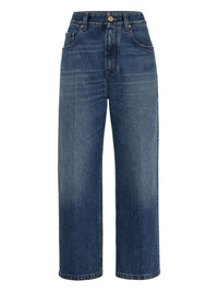 cropped jeans Highlights - Blue - Front button and zip fastening - Belt loops - Classic five pockets - Logo patch to the rear - Cropped Made in Italy Composition Cotton 100% Washing instructions Read Manufacturer Guidelines