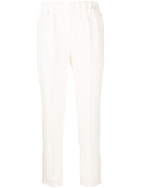 cropped slim-fit trousers In a white colourway, this pair showcases Brunello Cucinelli's understated and timeless aesthetic. These cropped trousers are presented in a tonal colourway and simply detailed with pleats. Made In Italy Composition Outer: Acetate 52%, Silk 48% Lining: Acetate 65%, Polyester 35% SIZE & FIT Model measurements Height 5 ft 11 in(1.8 m) Bust/Chest 33.07 in(84 cm) Hips 37.4 in(95 cm) Waist 25.19 in(64 cm) FittingInformation This piece fits true to size. We recommend you get your regular size Cut for a slim fit Made with a mid-weight non-stretch fabric Washing instructions Dry Clean Only