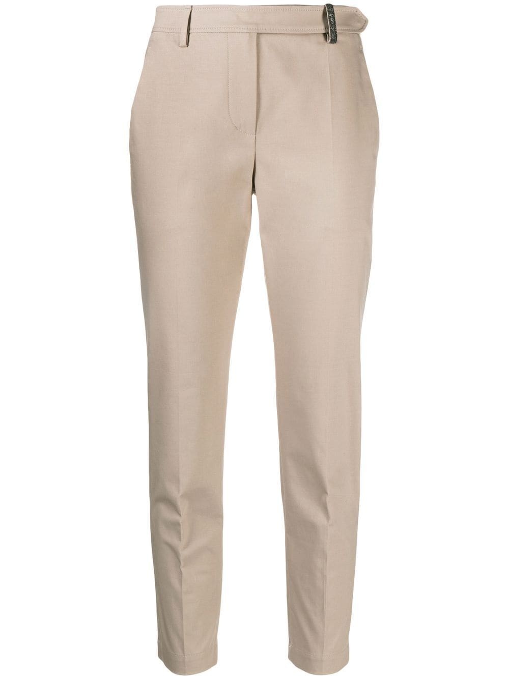 cropped slim-leg trousers Brunello Cucinelli demonstrates its affinity for traditional tailoring with these trousers. Made from stretch cotton, this beige pair features a cropped length. Made in Italy Composition Outer: Eco Brass 100%, Cotton 97%, Spandex/Elastane 3% Lining: Cupro 94%, Spandex/Elastane 6% SIZE & FIT Model measurements Height 5 ft 10 in(1.78 m) Bust/Chest 29.92 in(76 cm) Hips 34.64 in(88 cm) Waist 23.62 in(60 cm) Washing instructions Hand Wash