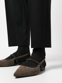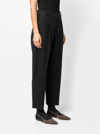 cropped wool-blend trousers Highlights - Black - Concealed front fastening - Belt loops - Pleat detailing - Two side slit pockets - Two rear welt pockets - Tapered leg - Cropped Made in Italy Composition Outer: Wool 75%, Polyamide 23%, Elastane 2% Lining: Polyester 36%, Acetate 32%, Cupro 32% SIZE & FIT Model measurements Height 5 ft 11 in(1.8 m) Bust/Chest 33.07 in(84 cm) Hips 37.4 in(95 cm) Waist 25.19 in(64 cm) FittingInformation Designed for a tapered fit, these trousers allow for a close fit at the waist and a loose unrestricted fit over the leg with a closer fit towards the ankle Made from a midweight stretch fabric, this piece offers elasticity and flexibility when worn This piece fits true to size – take your usual size Washing instructions Dry Clean Only