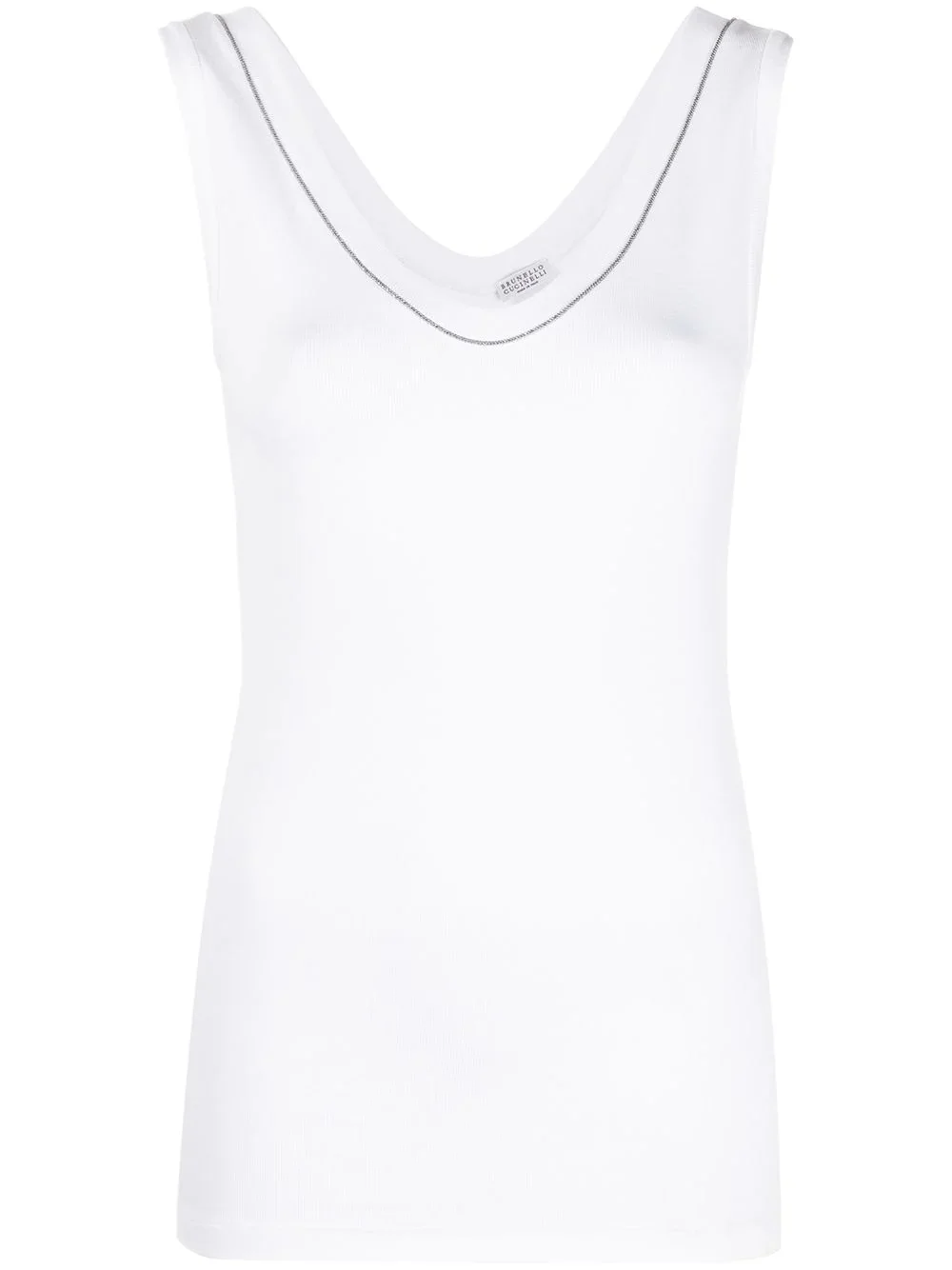crystal-detail vest top white stretch-cotton V-neck scoop back sleeveless crystal embellishment fitted silhouette Made in Italy Composition Eco Brass 100%, Cotton 94%, Elastane 6% SIZE & FIT Model measurements Height 5 ft 10 in(1.77 m) Bust/Chest 32.28 in(82 cm) Hips 35.03 in(89 cm) Waist 25.19 in(64 cm) Washing instructions Hand Wash