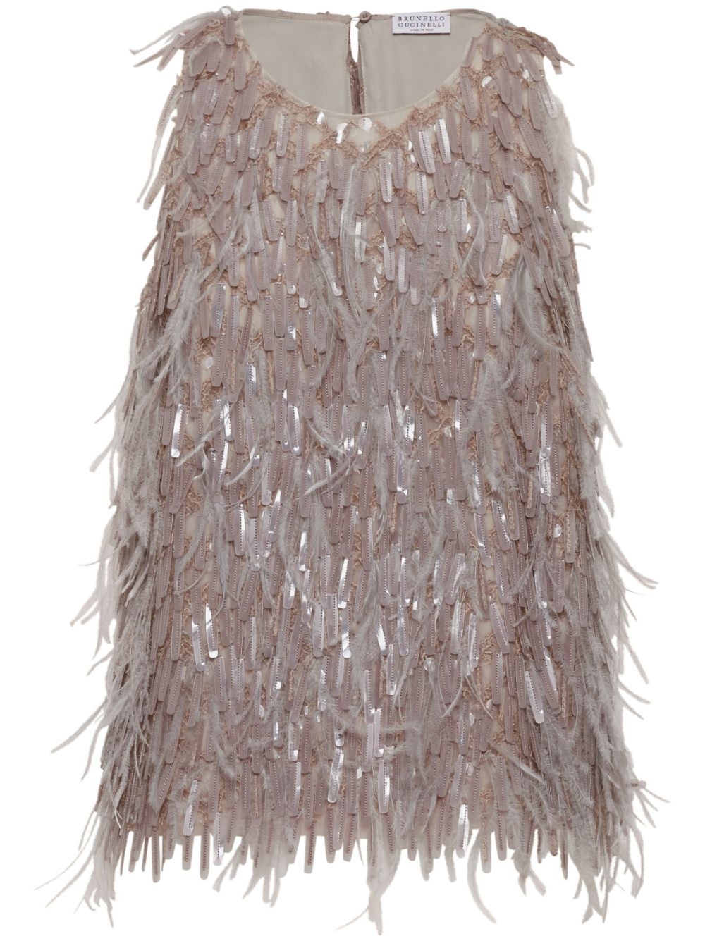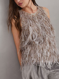Dazzling embroidered top Highlights - Taupe grey - Feather detailing - Keyhole detail to the rear - Single rear button fastening - Round neck - Sleeveless - Flared hem Made in Italy Composition Outer: Silk 100%