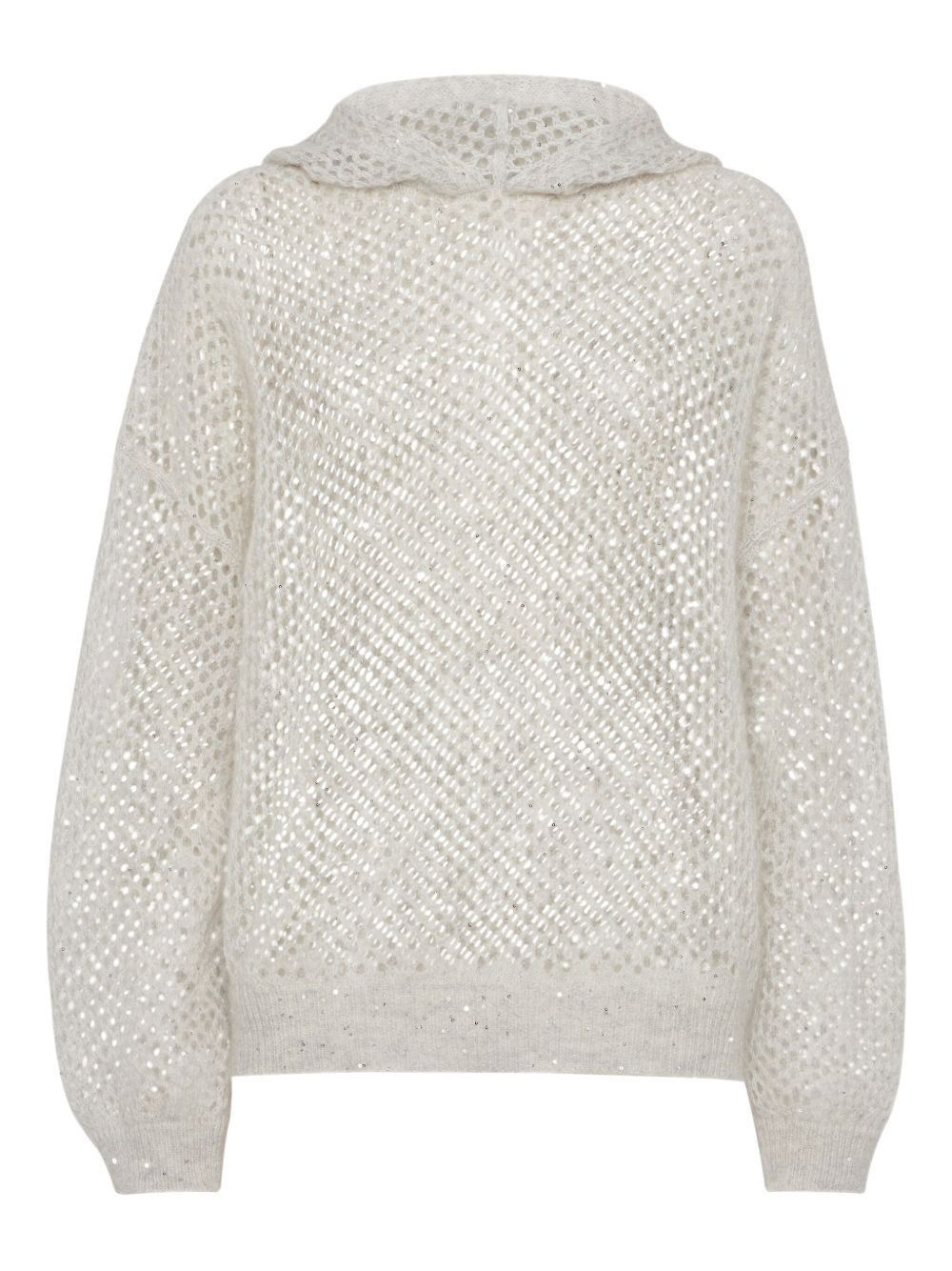 dazzling mesh jumper Highlights - Light grey - Classic hood - Drop shoulder - Long sleeves - Ribbed cuffs and hem Made in Italy Composition Mohair 42%, Nylon 30%, Fabric 28% Washing instructions Hand Wash