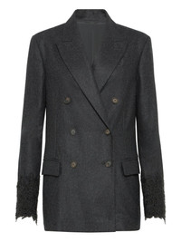 Virgin wool flannel blazer with wispy lace cuffs