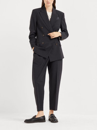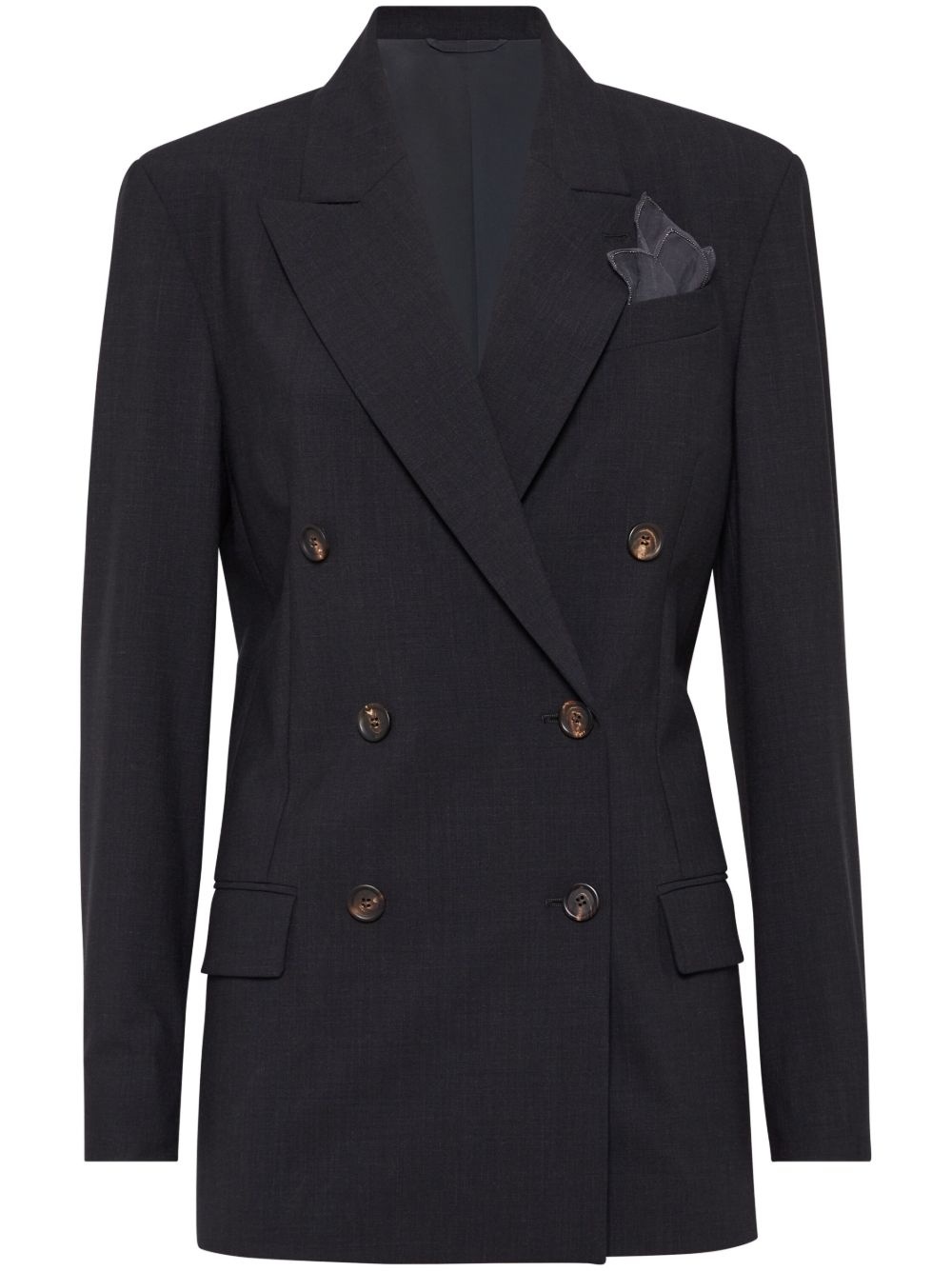 double-breasted blazer Highlights - Grey - Virgin wool blend - Double-breasted button fastening - Peak lapels - Two side flap pockets - Long sleeves - Buttoned cuffs - Straight hem Made in Italy Composition Virgin Wool 75%, Polyamide 23%, Elastane 2% Washing instructions Dry Clean Only