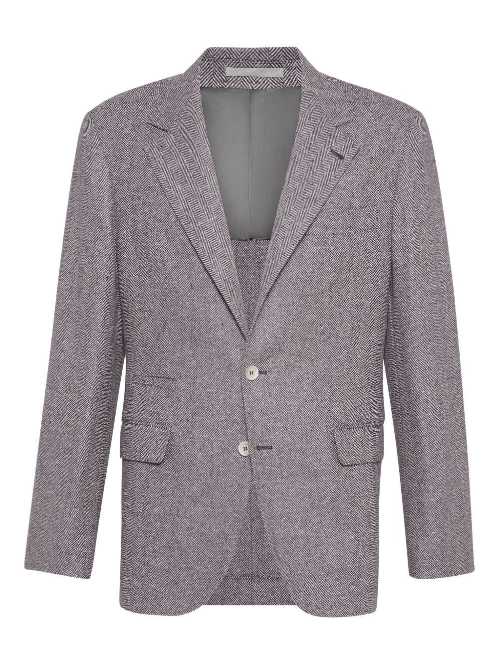 Wool and cashmere flecked chevron deconstructed blazer