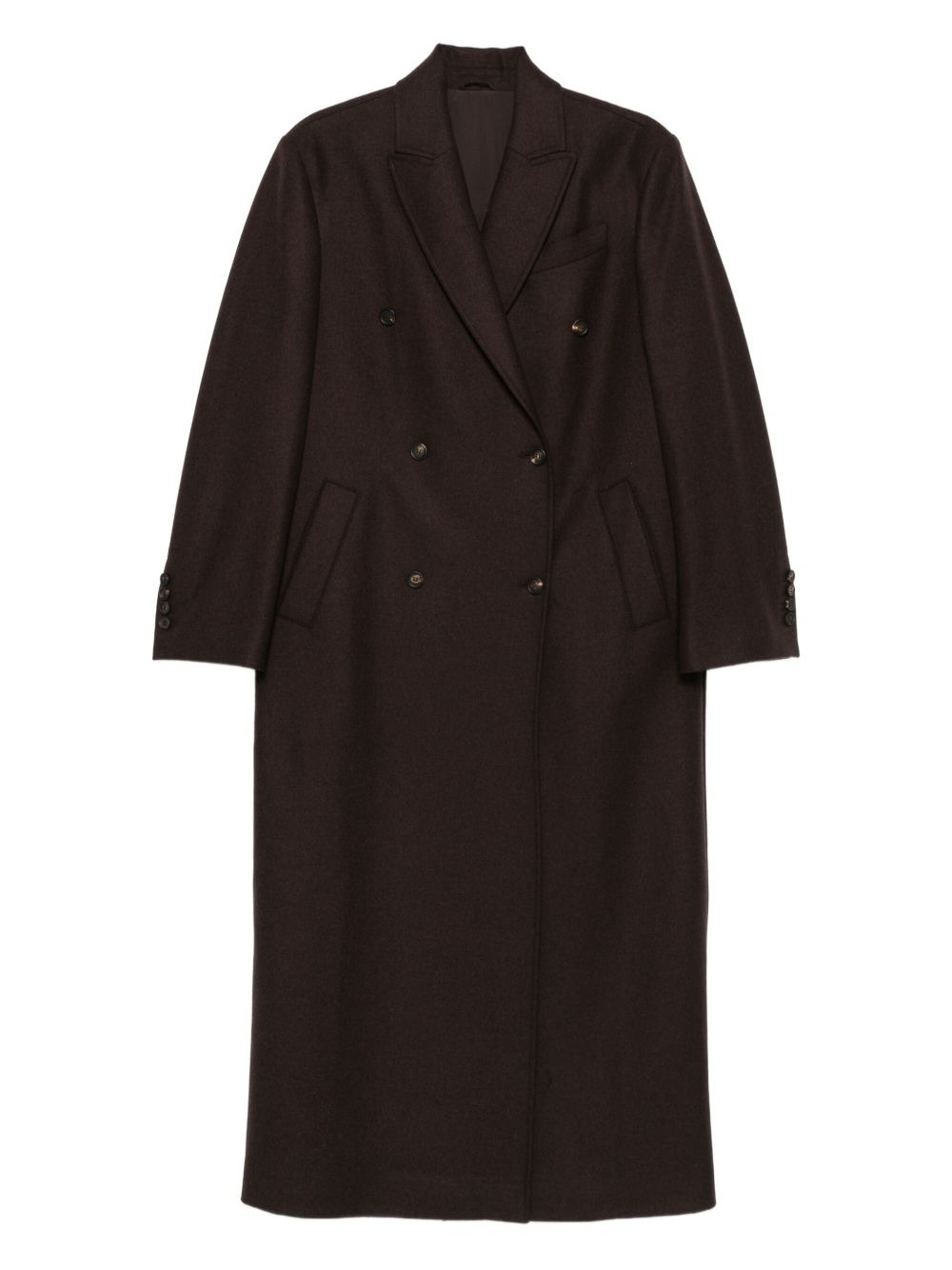 double-breasted buttoned coat Highlights Made in Italy Composition Outer: Eco Brass 100%, Wool 98%, Other fibres 2% Lining: Acetate 74%, Silk 26% SIZE & FIT Model measurements Height 5 ft 9 in(1.75 m) Bust/Chest 32.67 in(83 cm) Hips 36.22 in(92 cm) Waist 24.8 in(63 cm)