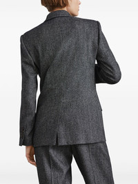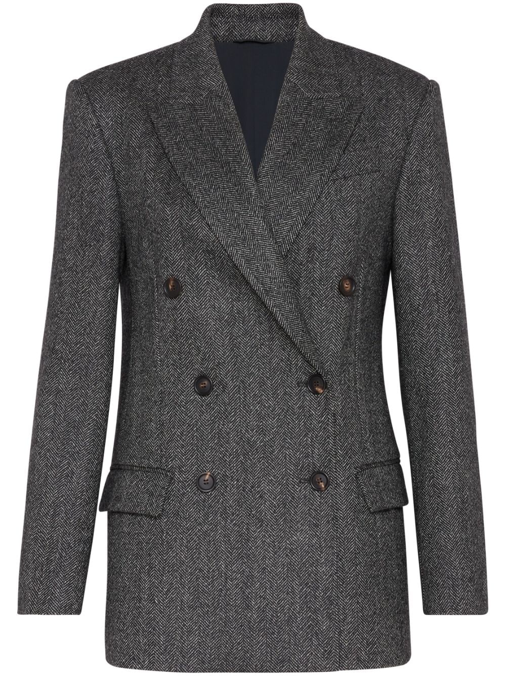 double-breasted herringbone blazer Highlights - Dark grey - Virgin wool blend - Herringbone pattern - Dart detailing - Peak lapels - Double-breasted button fastening - Long sleeves - Buttoned cuffs - Chest welt pocket - Two front flap pockets - Central rear vent - Straight hem Made in Italy Composition Virgin Wool 51%, Wool 36%, Polyamide 12%, Elastane 1%