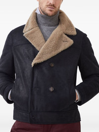 double-breasted jacket Highlights - Navy blue - Faux shearling collar - Double-breasted button fastening - Side pockets - Stitched detailing Made in Italy Composition Calf Leather 100% Washing instructions Read Manufacturer Guidelines