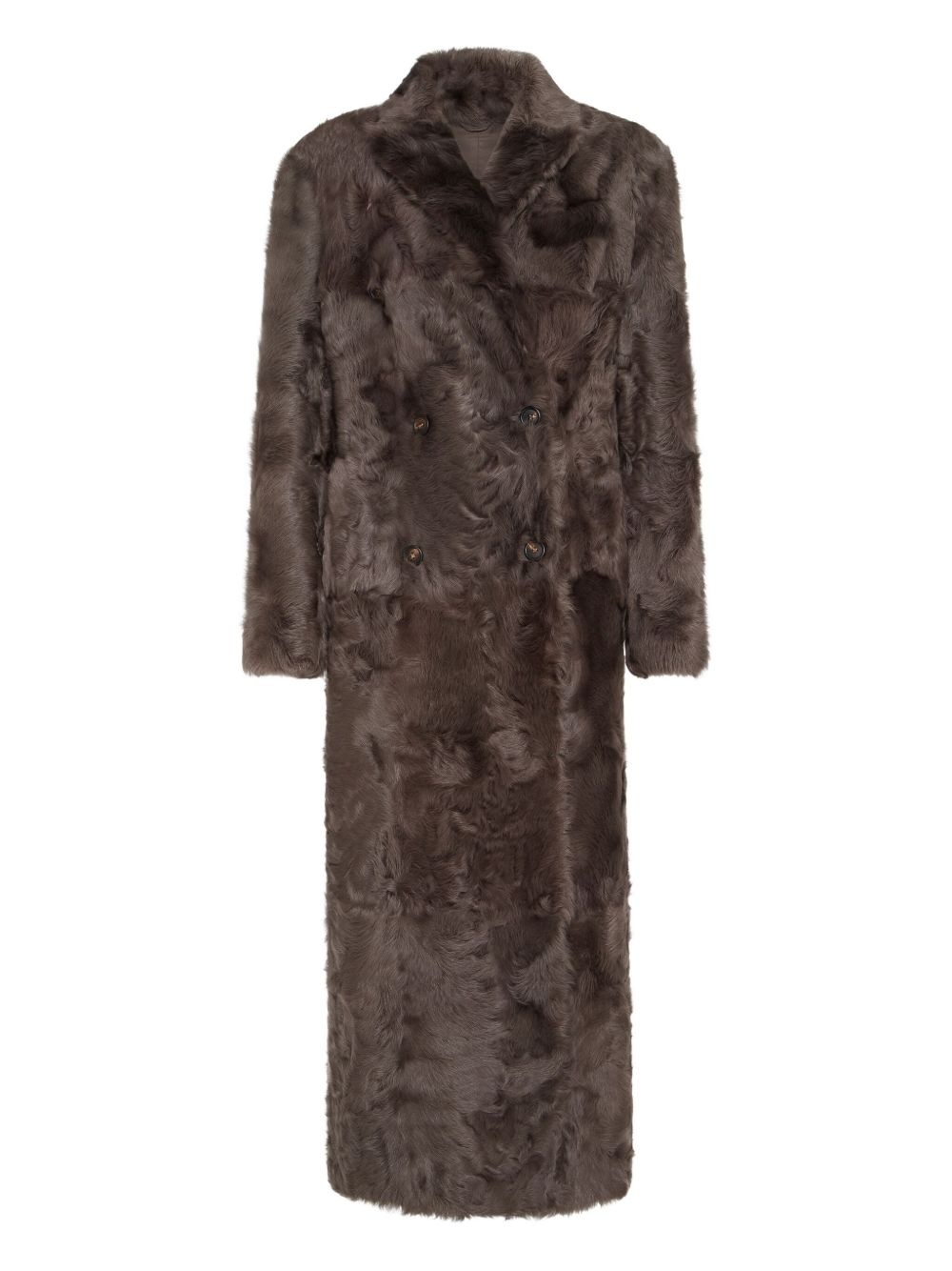 double-breasted lamb fur coat Highlights - Brown - Lamb fur - Double-breasted fastening - Notched lapel - Long sleeves - Patch pockets Made in Italy Composition Outer: Lamb Fur 100% Lining: Silk 100% Washing instructions Read Manufacturer Guidelines