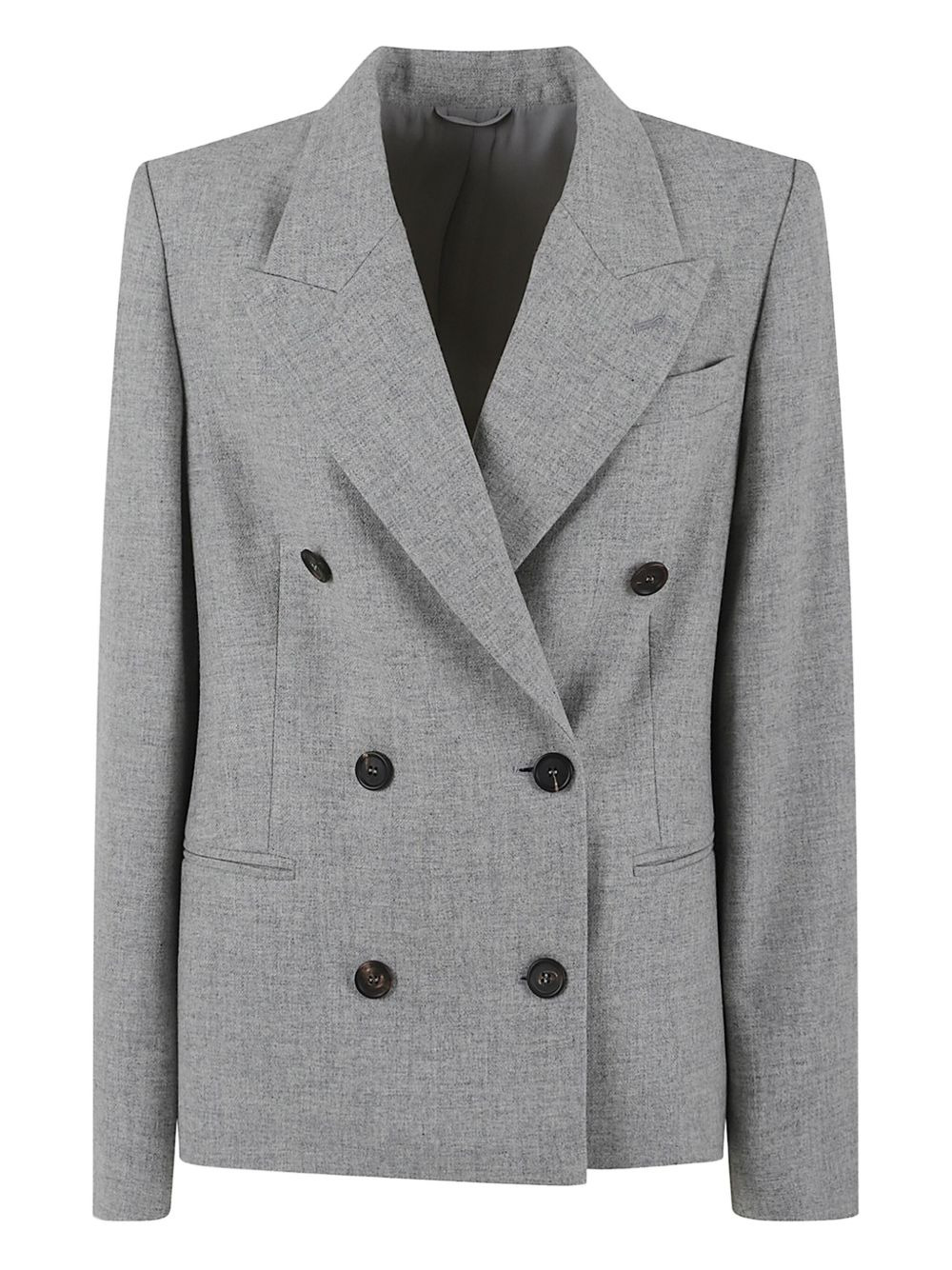 double-breasted wool blazer Highlights - Grey - Double-breasted button fastening - Peak lapels - Front welt pockets - Long sleeves Made in Italy Composition Wool 100% Washing instructions Dry Clean Only