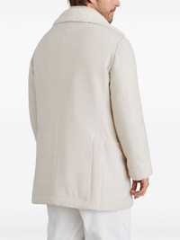 double-breasted wool coat Highlights - Light beige - Cashmere - Wide notch lapels - Double-breasted button fastening - Long sleeves - Front zip fastening pockets - Two front flap pockets - English rear vents - Shearling lining Made in Italy Composition Cashmere 100% Washing instructions Read Manufacturer Guidelines