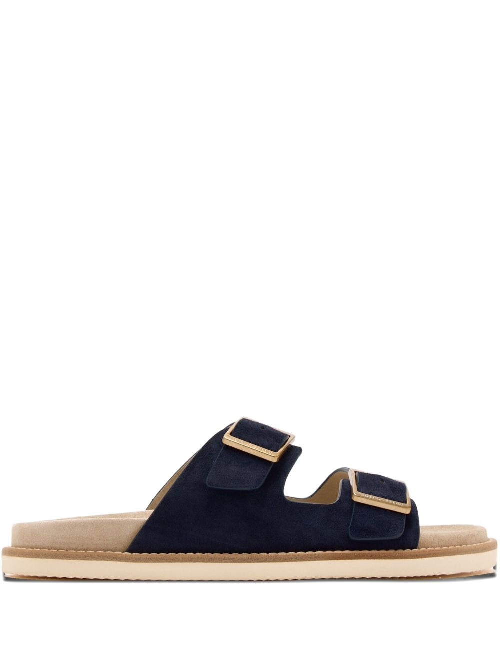 double-buckle suede sandals Highlights - Navy blue - Suede - Double buckle fastening - Cream rubber sole Made in Italy Composition Sole: Rubber 100% Lining: Calf Suede 100% Outer: Calf Suede 100%