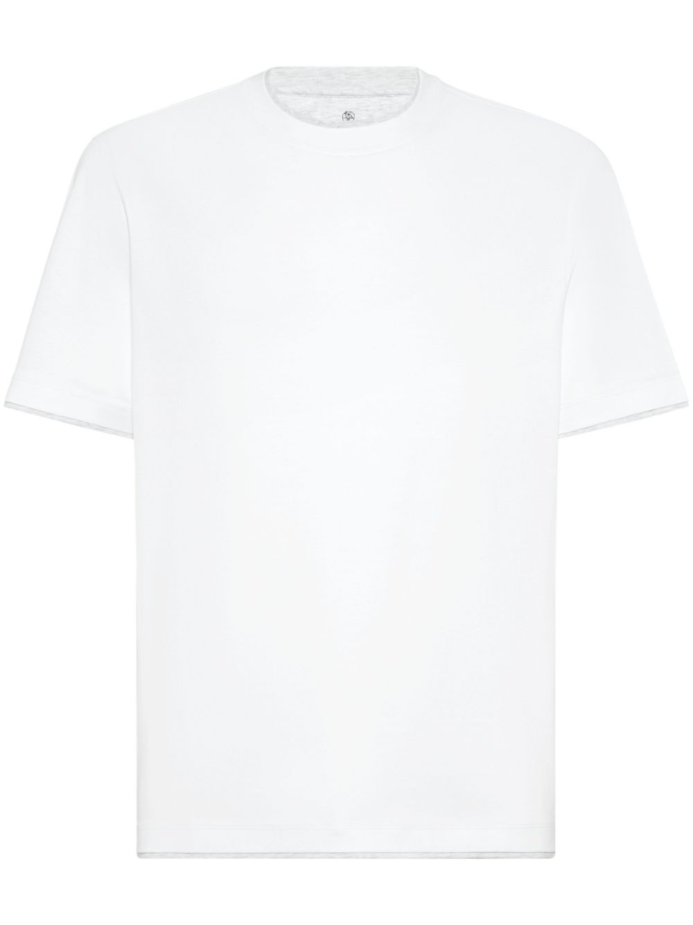 double-layer cotton T-shirt Highlights - White/light grey - Cotton - Jersey texture - Double layer - Crew neck - Short sleeves - Straight hem Made in Italy Composition Cotton 100% SIZE & FIT Measurement CHEST 40.94 in(104 cm) Washing instructions Read Manufacturer Guidelines