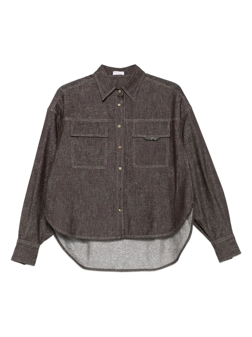 double-pocket denim shirt Highlights - Chocolate brown - Long sleeves - Curved hem - Flap pockets Made in Italy Composition Acetate 74%, Cotton 60%, Viscose 33%, Silk 26%, Polyester 5%, Polyamide 2% SIZE & FIT Model measurements Height 5 ft 10 in(1.78 m) Bust/Chest 33.85 in(86 cm) Hips 36.61 in(93 cm) Waist 26.77 in(68 cm) Washing instructions Hand Wash