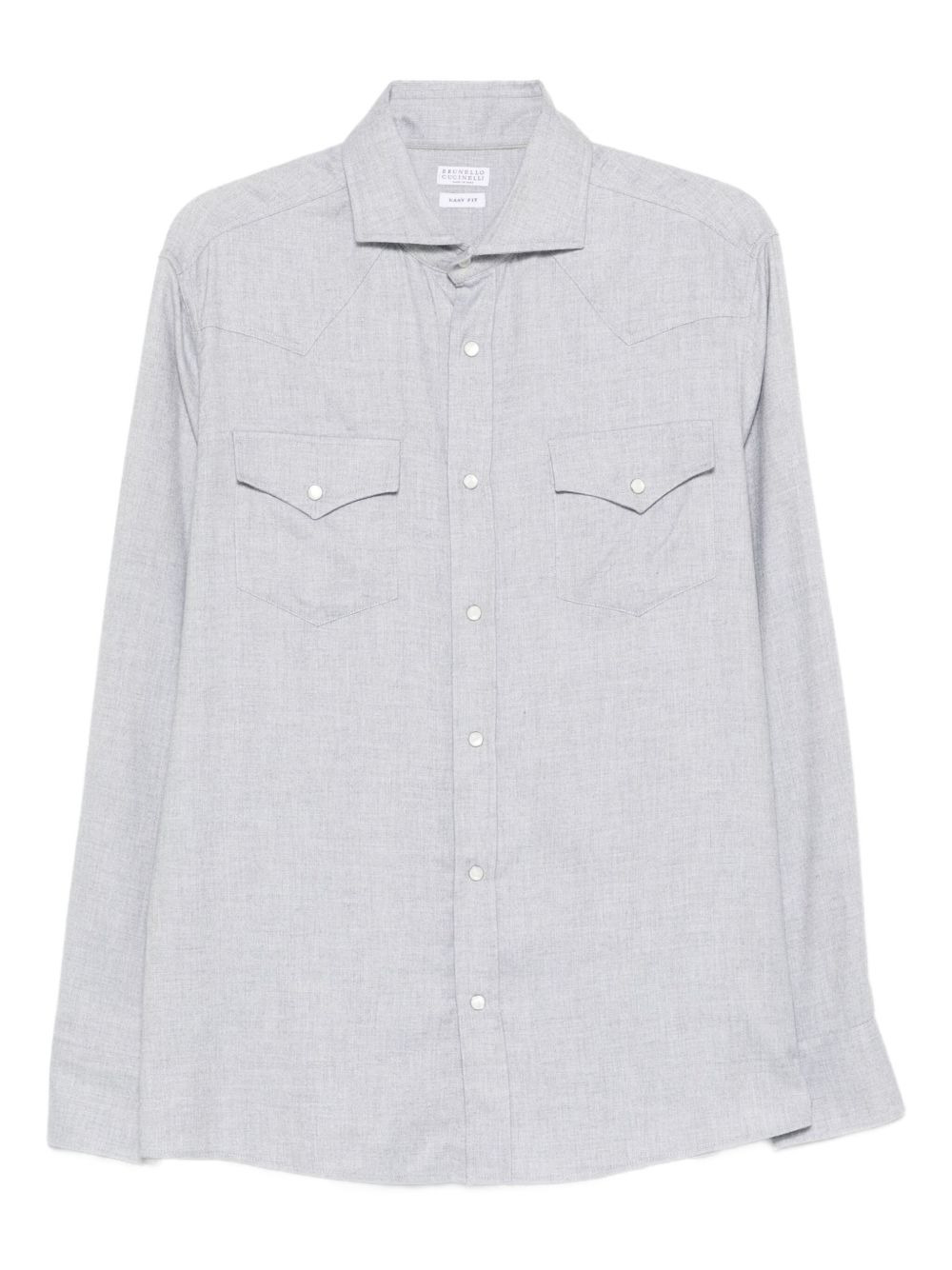 double-pocket long-sleeve shirt Highlights - Grey - Long sleeves - Button fastening - Point collar - Chest pockets Made in Italy Composition Cotton 59%, Lyocell 41% SIZE & FIT Model measurements Height 6 ft 1 in(1.85 m) Bust/Chest 35.82 in(91 cm) Hips 37.79 in(96 cm) Waist 29.13 in(74 cm) Washing instructions Hand Wash