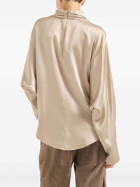 Double silk satin high neck blouse