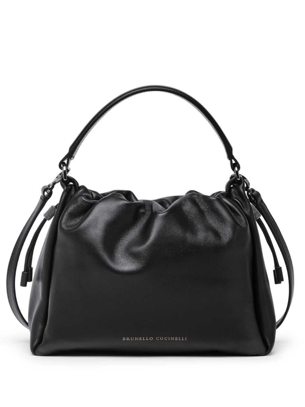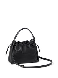 small Mellow leather bucket bag Highlights - Black - Calf leather - Top drawstring fastening - Adjustable detachable shoulder strap - Single top handle - Signature monili chain detail - Internal zip-fastening pocket - Embossed logo to the front Made in Italy Composition Outer: Calf Leather 100% SIZE & FIT Measurement DEPTH 3.14 in(8 cm) HEIGHT 7.08 in(18 cm) WIDTH 9.84 in(25 cm)