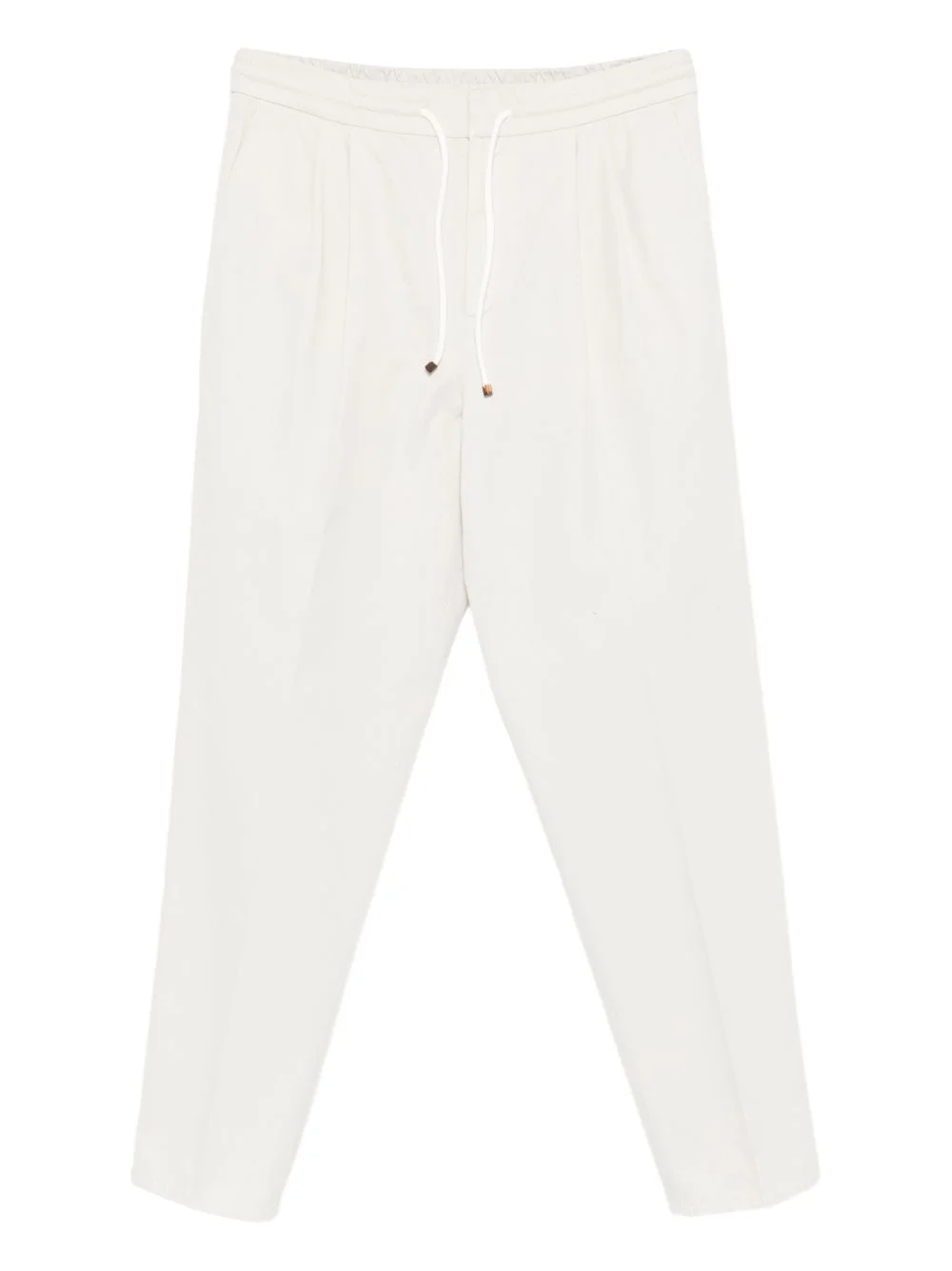 drawstring trousers Highlights - Off-white - Drawstring waistband - Side seam pockets - Rear welt pockets - Straight leg Made in Italy Composition Cotton 100% SIZE & FIT Model measurements Height 6 ft 2 in(1.87 m) Bust/Chest 36.41 in(92.5 cm) Hips 37 in(94 cm) Waist 29.52 in(75 cm) Washing instructions Machine Wash