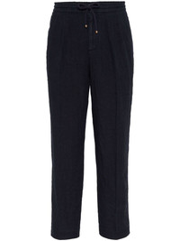 linen trousers Highlights - Midnight blue - Elasticated drawstring waistband - Two side slash pockets Made In Italy Composition Linen/Flax 100% Washing instructions Read Manufacturer Guidelines
