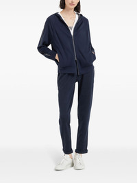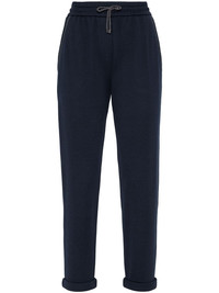 elasticated straight trousers Highlights - Black - Cotton-silk blend - Elasticated drawstring waistband - Two diagonal pockets to the sides - Skinny cut - Straight hem Made in Italy Composition Cotton 67%, Silk 31%, Nylon 2% SIZE & FIT Model measurements Height 5 ft 10 in(1.79 m) Bust/Chest 31.49 in(80 cm) Hips 35.03 in(89 cm) Waist 23.62 in(60 cm) FittingInformation Designed for a slim fit, these trousers offer a close fit at the waist, allowing a comfortable close fit and some movement over the leg Adjust this piece’s waistband to your preference using the drawstring Made from a midweight non-stretch fabric, this piece offers minimal elasticity when worn This piece fits true to size – take your usual size Washing instructions Dry Clean Only