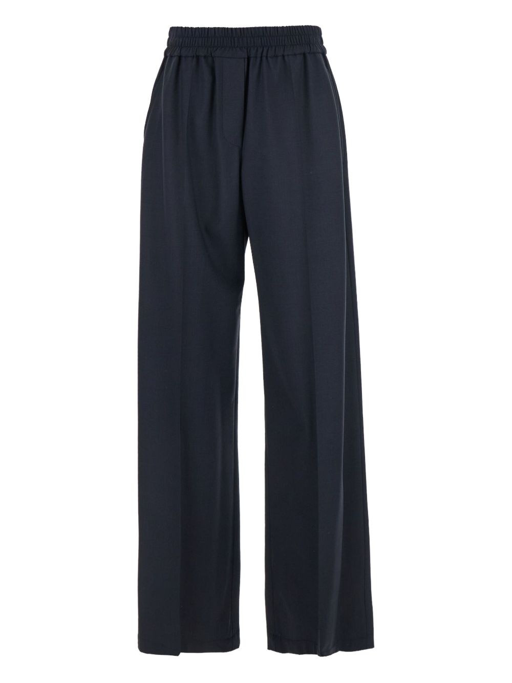 elasticated-waist trousers Highlights - Navy blue - Elasticated waistband - Two front pockets - Two back pockets - Wide-leg design Made in Italy Composition Virgin Wool 75%, Polyamide 23%, Elastane 2%