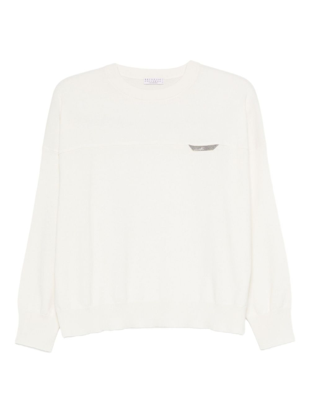 embellished crew-neck T-shirt Highlights - Off-white - Crew neck - Long sleeves - Metallic embellishment Made in Italy Composition Cashmere 100% SIZE & FIT Model measurements Height 5 ft 11 in(1.8 m) Bust/Chest 31.49 in(80 cm) Hips 36.61 in(93 cm) Waist 24.4 in(62 cm) Washing instructions Hand Wash