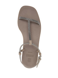 embellished T-bar sandals Reflecting a glitzy aesthetic, Brunello Cucinelli presents these sandals. The brass-embellished strappy design reflect this statement style. Made in Italy Composition Suede 100% SIZE & FIT Measurement HEEL 0.39 in(1 cm)