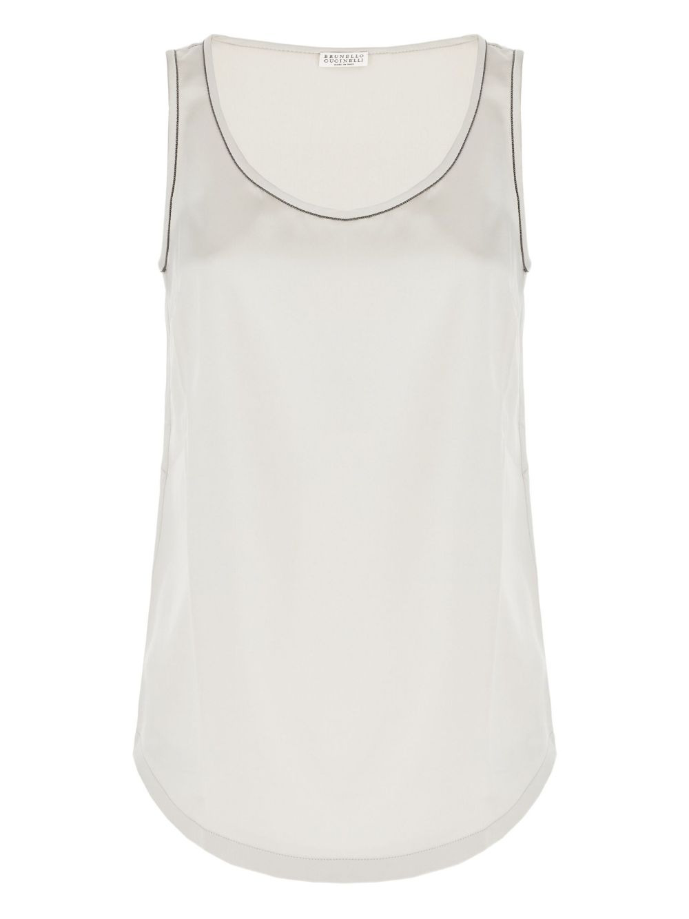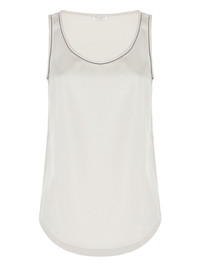 embellished-trim satin top Highlights - Beige - Satin fabric - Scoop neck - Sleeveless - Curved hem Imported Composition Silk 96%, Elastane 4% Washing instructions Read Manufacturer Guidelines