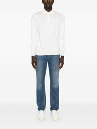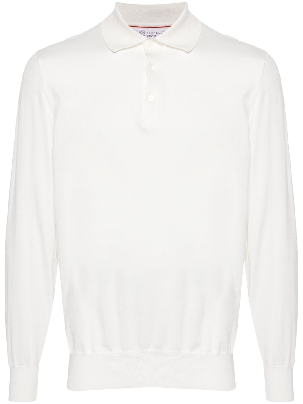 fine-knit cotton polo shirt Highlights - White - Cotton - Fine knit - Polo collar - Front button placket - Long sleeves - Ribbed cuffs and hem Made in Italy Composition Cotton 100% SIZE & FIT Model measurements Height 6 ft 2 in(1.87 m) Bust/Chest 36.41 in(92.5 cm) Hips 37 in(94 cm) Waist 29.52 in(75 cm) FittingInformation Designed for a slim fit, this polo shirt offers a comfortable fit that sits just away from the body The ribbed hem offers a close, comfortable fit Made with a fine knit, this piece offers some stretch This piece fits true to size – take your usual size Washing instructions Hand Wash