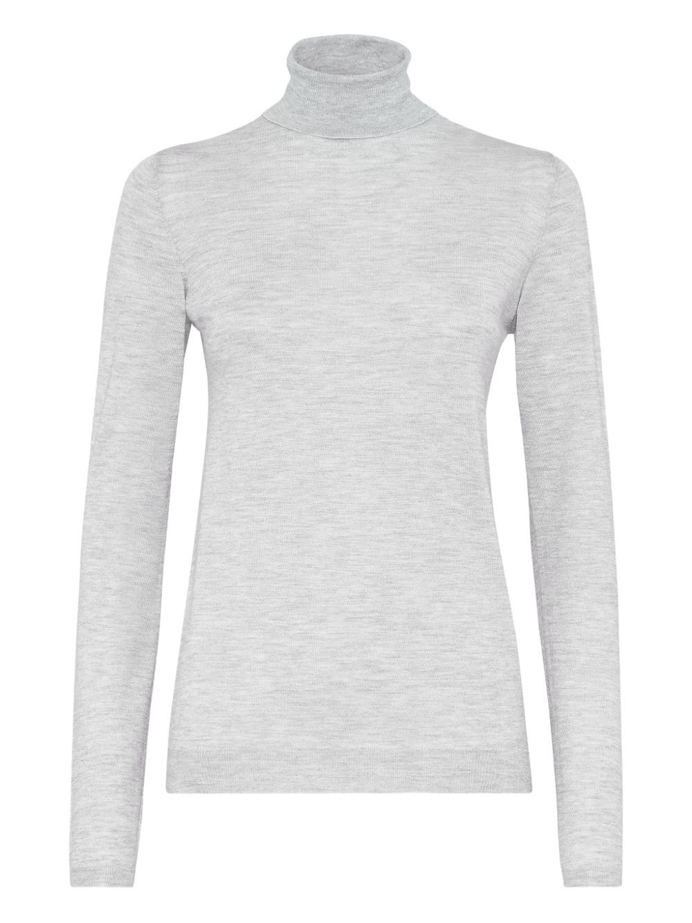 fine knit jumper Highlights - Grey - Silk-cashmere blend - roll neck - Long sleeves - Straight hem Made in Italy Composition Cashmere 51%, Silk 22%, Nylon 20%, Polyester 7% SIZE & FIT FittingInformation This piece fits true to size. We recommend you get your regular size Cut for a slim fit Made with a lightweight fabric Washing instructions Hand Wash