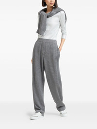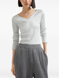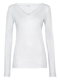 fine-ribbed T-shirt Highlights - Light grey - V-neckline - Long sleeves - Ribbed texture Made in Italy Composition Cotton 95%, Elastane 5% Washing instructions Read Manufacturer Guidelines
