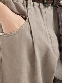 Garment-dyed five-pocket trousers in cotton and linen cover with monili