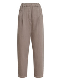 five-pocket trousers Highlights - Brown - Monili embellishment - Five-pockets - Elasticated waistband Made in Italy Composition Cotton 60%, Linen/Flax 40% Washing instructions Read Manufacturer Guidelines