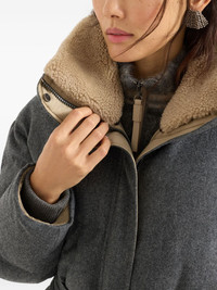Virgin wool flannel down coat with detachable merino shearling collar and monili