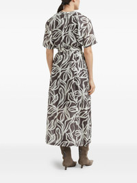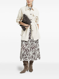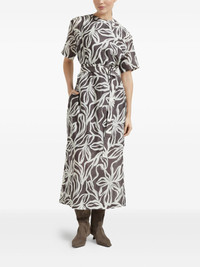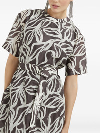 Silk floral print pongée midi T-shirt dress with monili