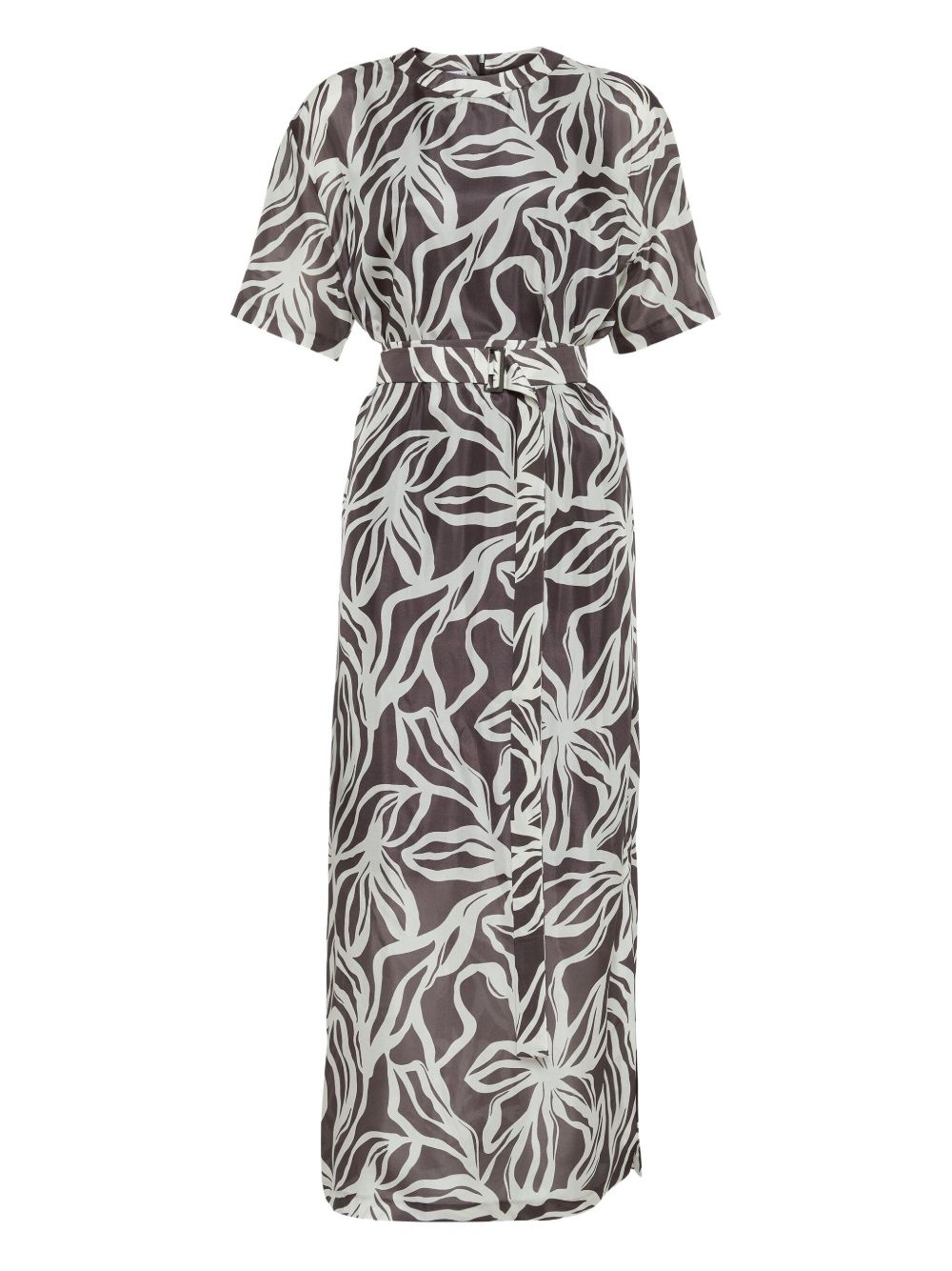 floral-print Monili-detail maxi dress Highlights - White - Concealed rear zip fastening - Two side inset pockets - Belted waist - Short sleeves Made in Italy Composition Silk 100%