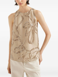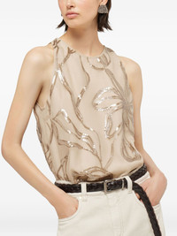 floral sequin top Highlights - Camel beige - Silk - Sleeveless - Round neck - Sequin embellishment - Floral pattern Made in Italy Composition Silk 100%