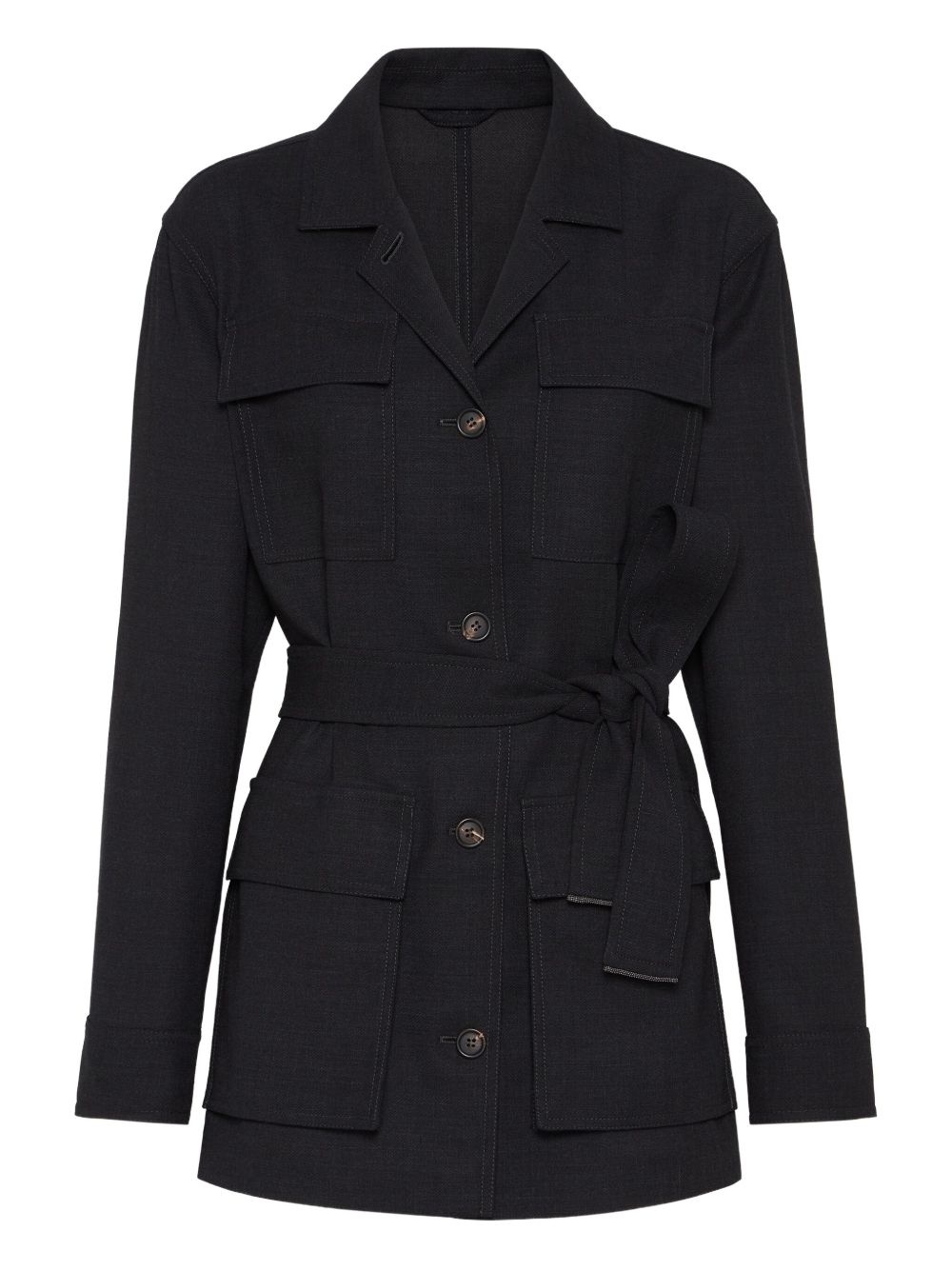 Fluid twill blazer Highlights - Charcoal grey - Front button fastening - Belted waist - Notched lapels - Four front patch pockets Made in Italy Composition Virgin Wool 100% Washing instructions Read Manufacturer Guidelines