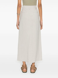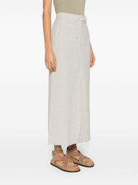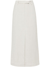 Fluid twill maxi skirt Brunello Cucinelli draws inspiration from its natural Umbrian surroundings to inspire the colour and fabric of this maxi skirt. It’s cut from beige twill with splits at the front and back to enhance its fluid column silhouette. Highlights - Sesame beige - Twill weave - High-waisted - Belt loops - Two side slash pockets - Front slit - Two rear faux welt pockets - Central rear vent - Ankle-length - Concealed front button, hook and zip fastening Made in Italy Composition Outer: Viscose 73%, Linen/Flax 27% Lining: Cotton 100%, Acetate 74%, Silk 26% SIZE & FIT Model measurements Height 5 ft 9 in(1.76 m) Bust/Chest 31.88 in(81 cm) Hips 35.43 in(90 cm) Waist 24.8 in(63 cm) FittingInformation This midi-length skirt is intended to be worn high on the waist The vented hem offers movement at the rear Made from a midweight non-stretch fabric This piece fits true to size – take your usual size