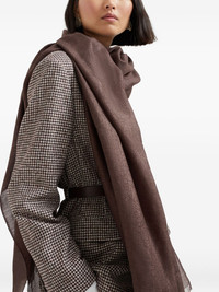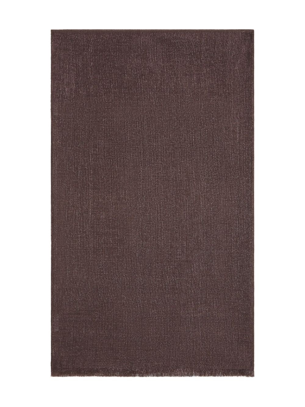 frayed-edge scarf Highlights - Dark brown - Frayed edge - Lightweight - Rectangle shape Made in Italy Composition Cashmere 60%, Silk 40% SIZE & FIT Measurement LENGTH 35.43 in(90 cm) WIDTH 47.24 in(120 cm) Washing instructions Hand Wash