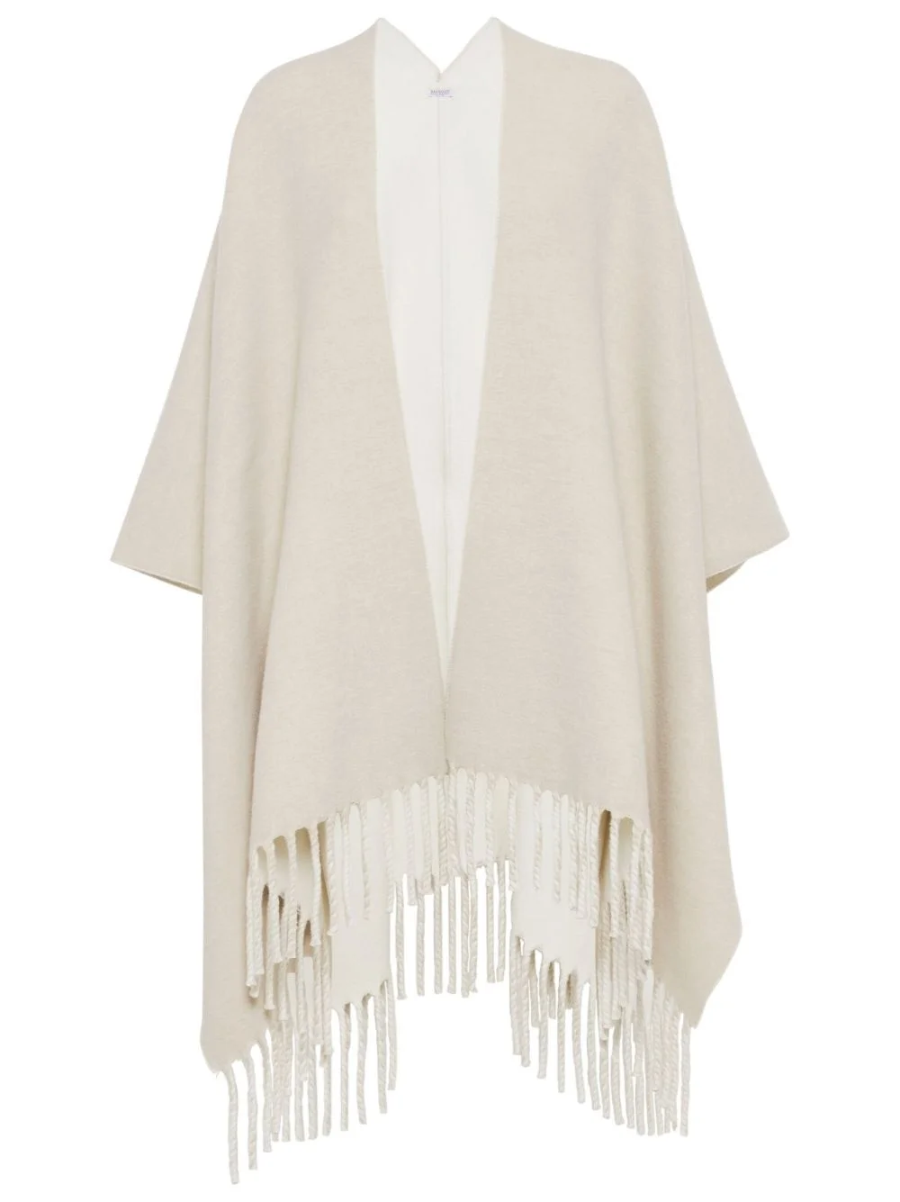 fringed-edge double knit cape Highlights - Beige - Wool-cashmere blend - Draped design - Fringed edge - Pull-on style Made in Italy Composition Wool 60%, Cashmere 40%